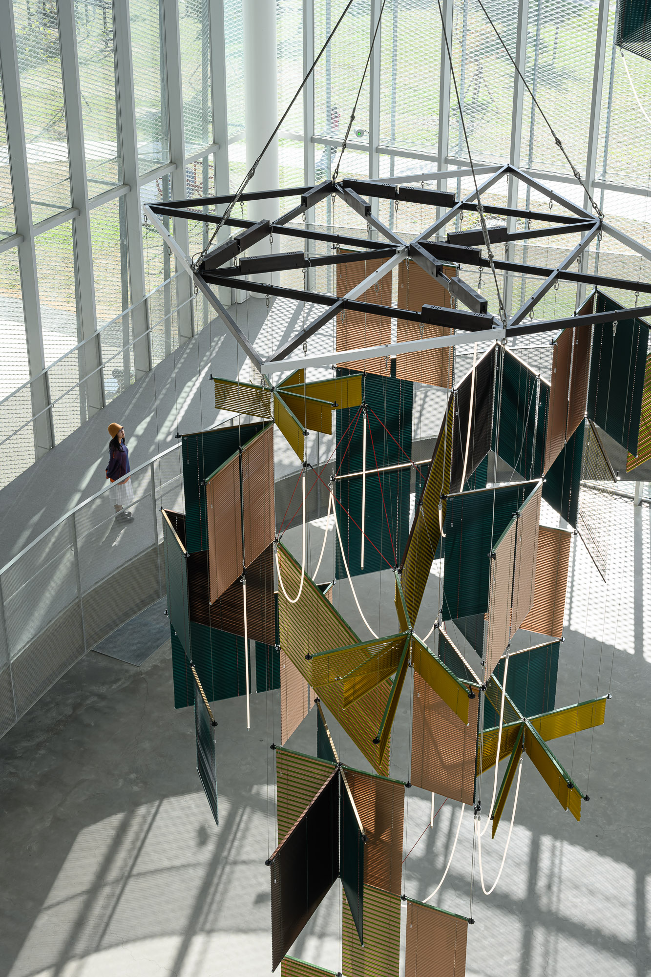 Liquid Votive will be installed at the monumental 27-meter-high void lobby space that links the galleries with the library. Consist with Yang’s iconic Venetian blind, Liquid Votive guides the audience to view along the spiral ramp. The work takes inspiration from sacred giant trees across various cultures around the world, in which they served as communal sites for spiritual bonds beyond physical gatherings. In particular, based on her field research in Taichung, the work embodies the cultural symbolism of the sacred tree, dashugong from Taiwan, as the concept of communal guidance and spiritual leadership, such as dangsan namu from Korea.